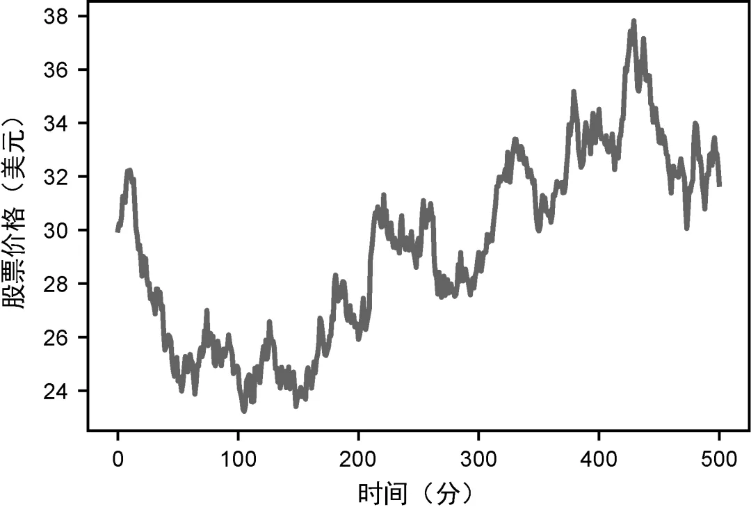股票是代表公司所有权的金融资产类型。当市场认为一家公司经营良好时,其股票价格就会上涨:买入股票的成本增加,卖出股票的回报也会增加。股票价格的变化是不稳定的、实时的。图1-1显示了在一天交易中的股票价格图。