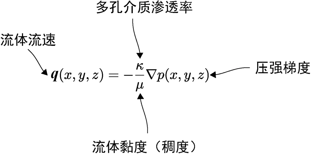 图1-12 达西定律对应的物理方程,决定流体在多孔岩石中的流动方式