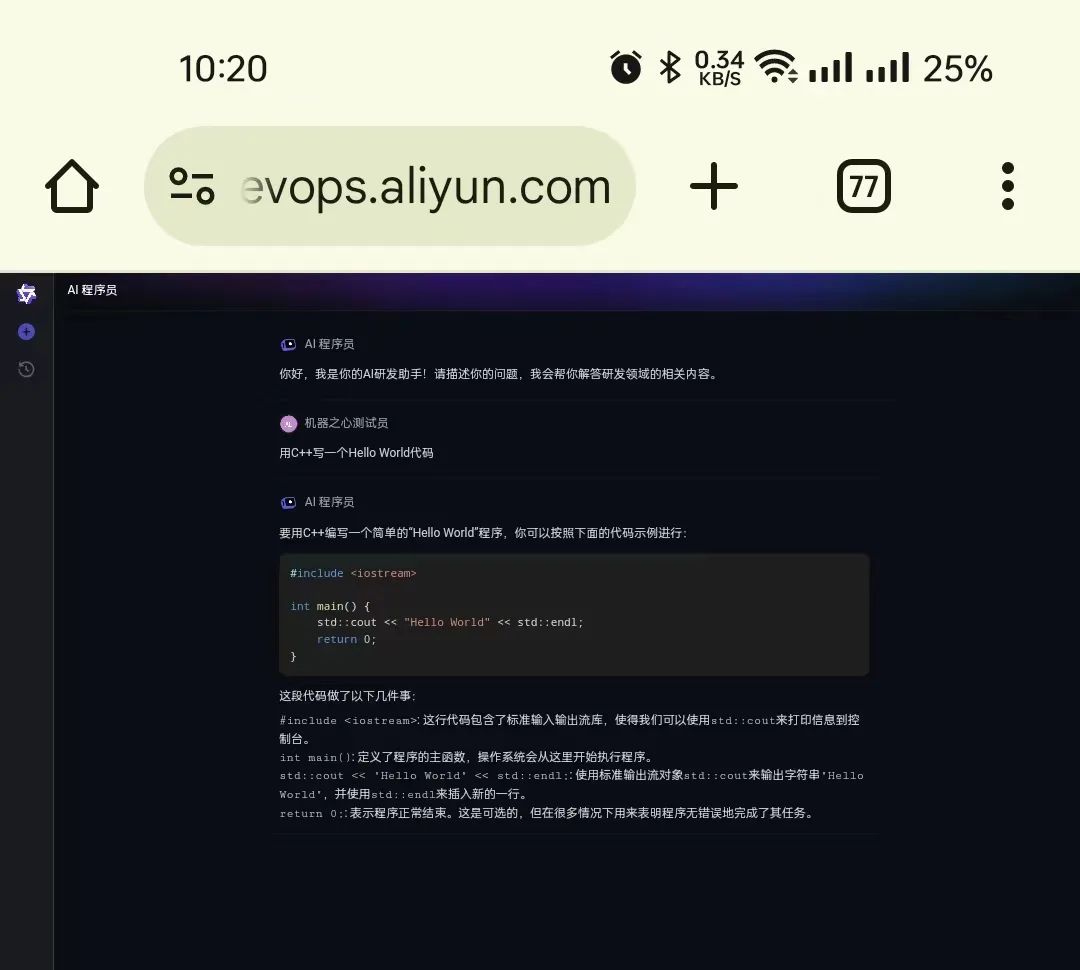 在手机浏览器上也能流畅地使用 AI 程序员。