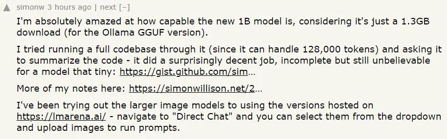 已经有动作快的网友对 Meta 新发布的轻量级模型进行了测试。他表示新的 1B 模型的能力好得出人意料,毕竟这个模型的参数量如此之小。具体来说,他让 Llama 3.2 1B 分析了一个完整的代码库,结果发现其表现虽不完美,但已经相当优秀了。