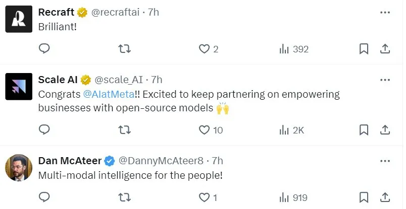 Meta 表示:「我们相信开放能推动创新并且是正确的前进道路,因此我们会继续分享我们的研究并与我们的合作伙伴和开发者社区合作。」
