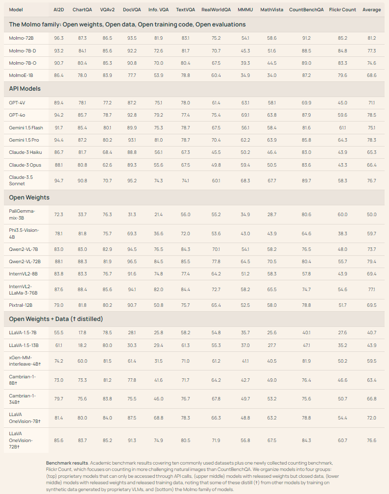 Molmo-72B,表现最佳的模型