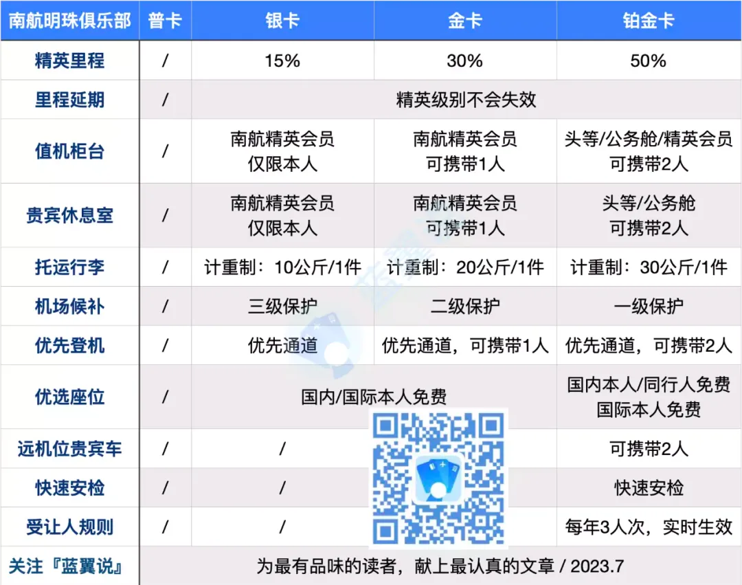 再来看看南航精英卡的礼遇: