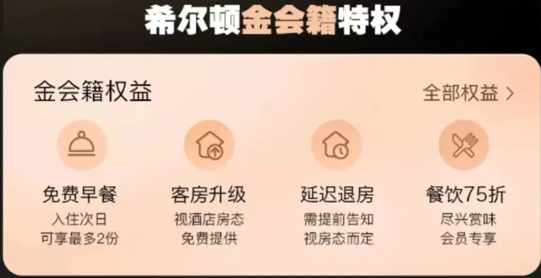 说正题。在一众酒店高级会籍中,希尔顿的金卡会籍无疑是性价比最高的一个。即便只是金卡,也能享受双早。要知道在一些希尔顿的高端品牌中,双早的价格妥妥价值几百元。而且遇到较为良心的酒店,还能给升级到套房。