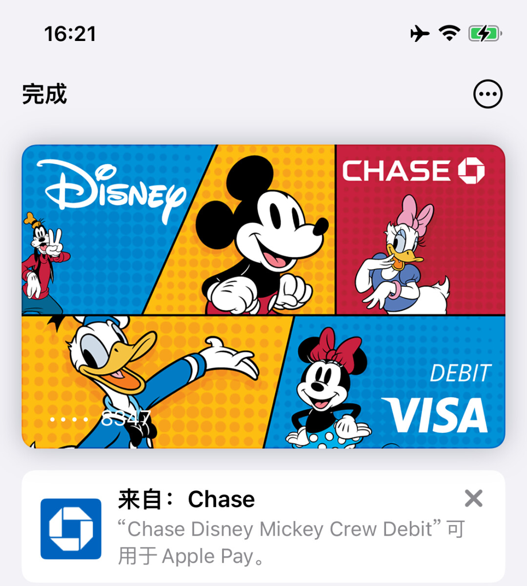 开完户可以直接绑Apple Pay,迪士尼的卡面已经能够正常显示: