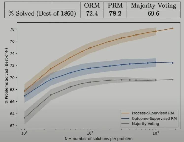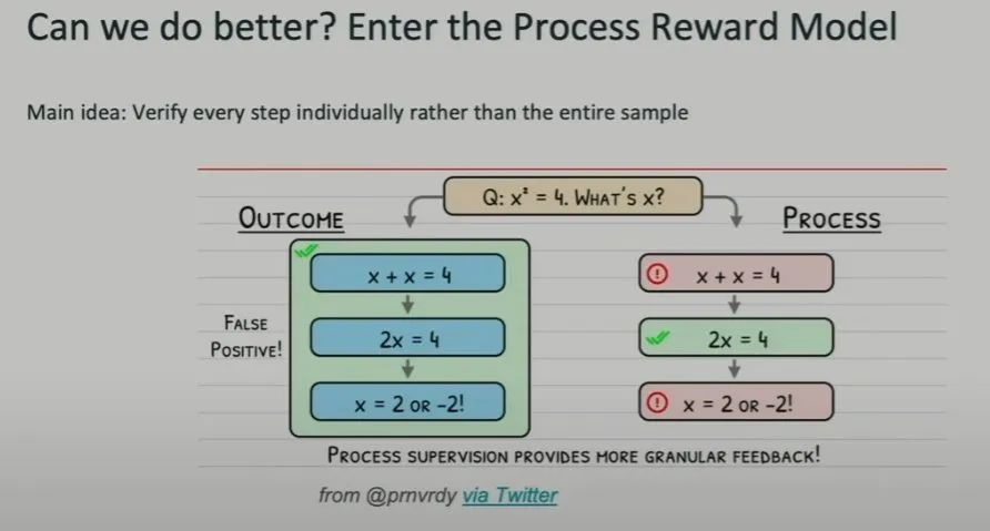 这篇论文发布于大概一年前,其中提出了「过程奖励模型」这一思路。简单来说,就是不再只是验证最终解答,而是验证每一步求解过程。只要过程中存在任何不正确的步骤,就判定最终结果是错误的,即便最终结果看起来是正确的。