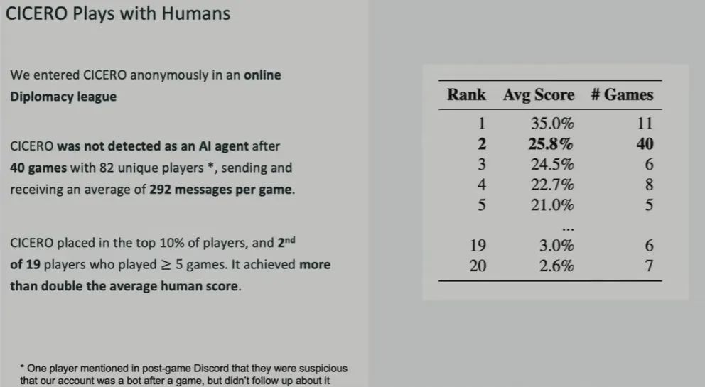 Brown 表示规划引擎是Cicero 的一大创新,现今的许多语言模型都还不具备这一点。