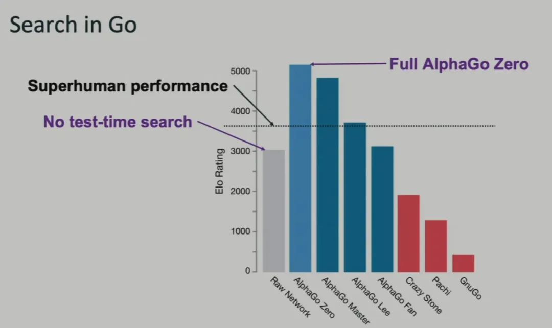 基于此,如果仅使用原始神经网络,要将 Elo 分数从 3000 提升到 AlphaGo Zero 那样的 5200,则需要将模型扩展大约 10 万倍。当然,Brown 提到 AlphaGo Zero 的 5200 分其实存在争议,考虑争议的话模型的扩展倍数可能在 1000 倍到 1 万倍之间。