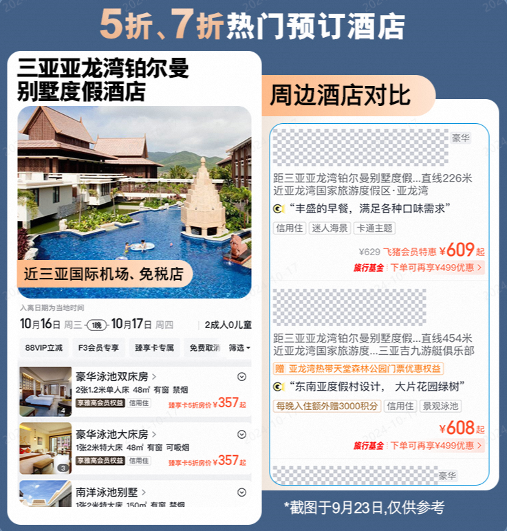 这个集合页,飞猪会及时更新,所以如果你没有那么多时间关注大促的信息,那么收藏这个集合页,没事的时候打开看看有没有中意的套餐即可。