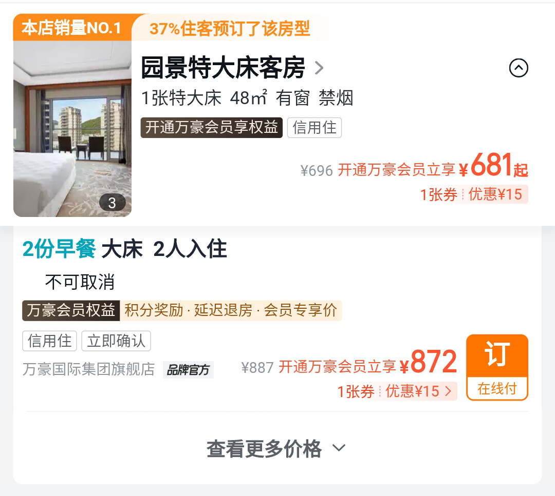 3、飞猪的88vip专享页面上有不少高等级酒店的套餐,但价格似乎比其他渠道都要贵,感觉不太靠谱。有会员表示,自己在88vip页面预订后,等到酒店入住时却发现价格更低了,大家觉得这是什么原因?
