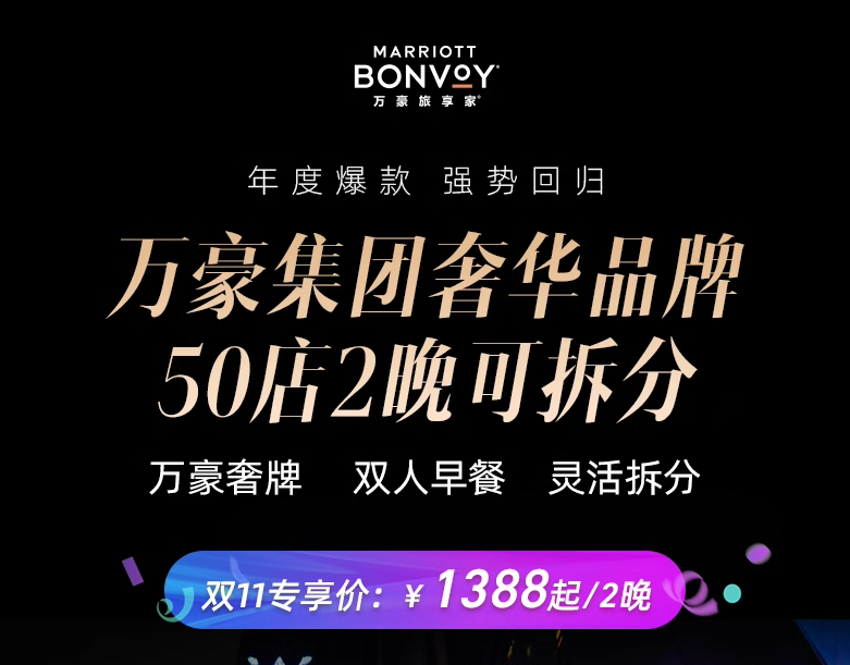 万豪国际集团旗舰店带来多重优惠,多款不同价格区间和目的地的套餐供你挑选。从全国通兑到热门单店,无论是休闲度假还是商务旅行,总能找到适合你的选择!
