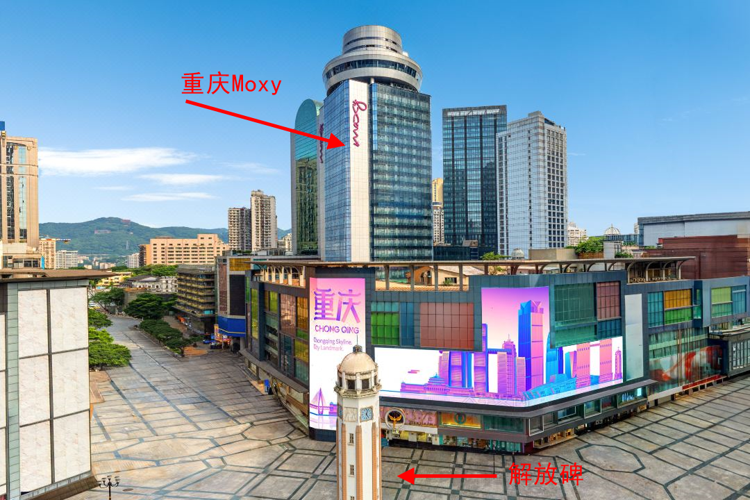 比如688元/2晚的重庆Moxy酒店,位于解放碑商圈,出门就是解放碑和八一路好吃街,著名景点洪崖洞近在咫尺。