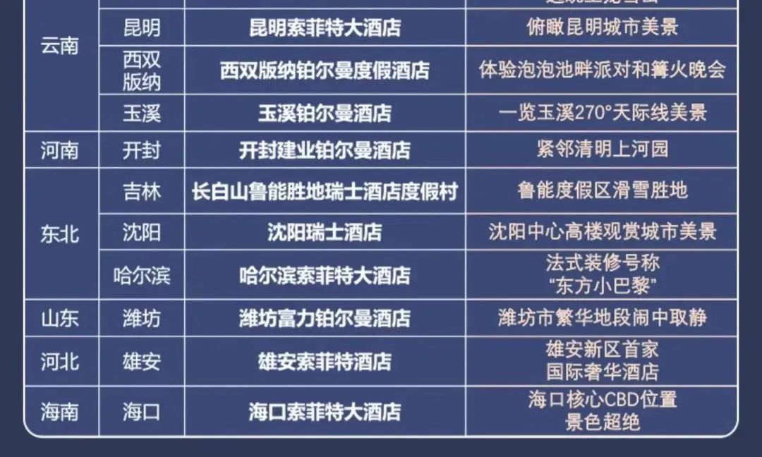 这些酒店分布在万宁、昆明、杭州、长沙、景德镇、重庆、成都、苏州、上海、西安、北京、长白山,一共12个城市20家酒店,如果想去这些地方旅游度假的,凯悦的这个套餐一定会让你住得非常舒服。