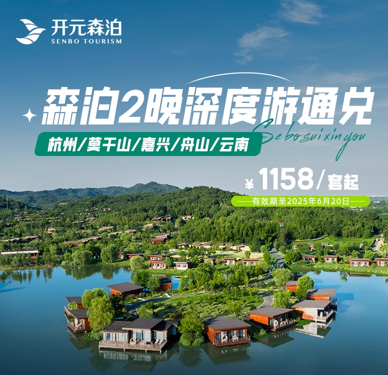 杭州/莫干山/嘉兴/舟山/云南开元森泊2晚连住通兑: 1158元起