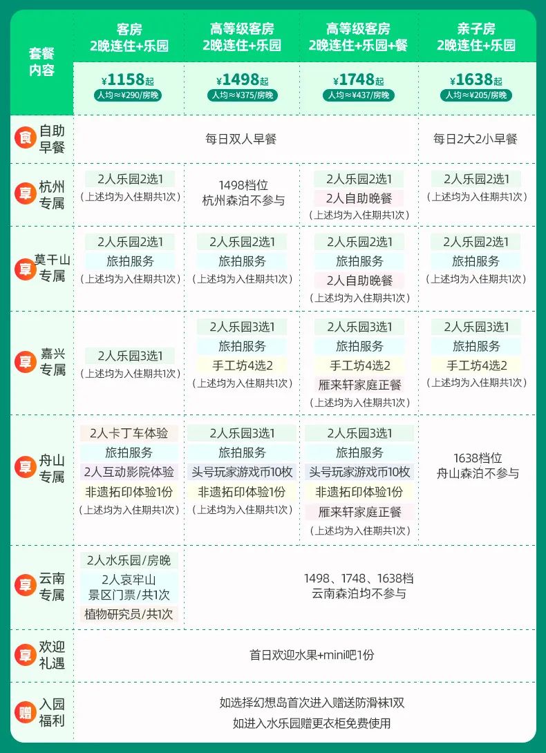 这个就是5家森泊两晚连住的通兑了,如果想深度游,就选这个,性价比会更高!两晚1158起步,也是带乐园票的。