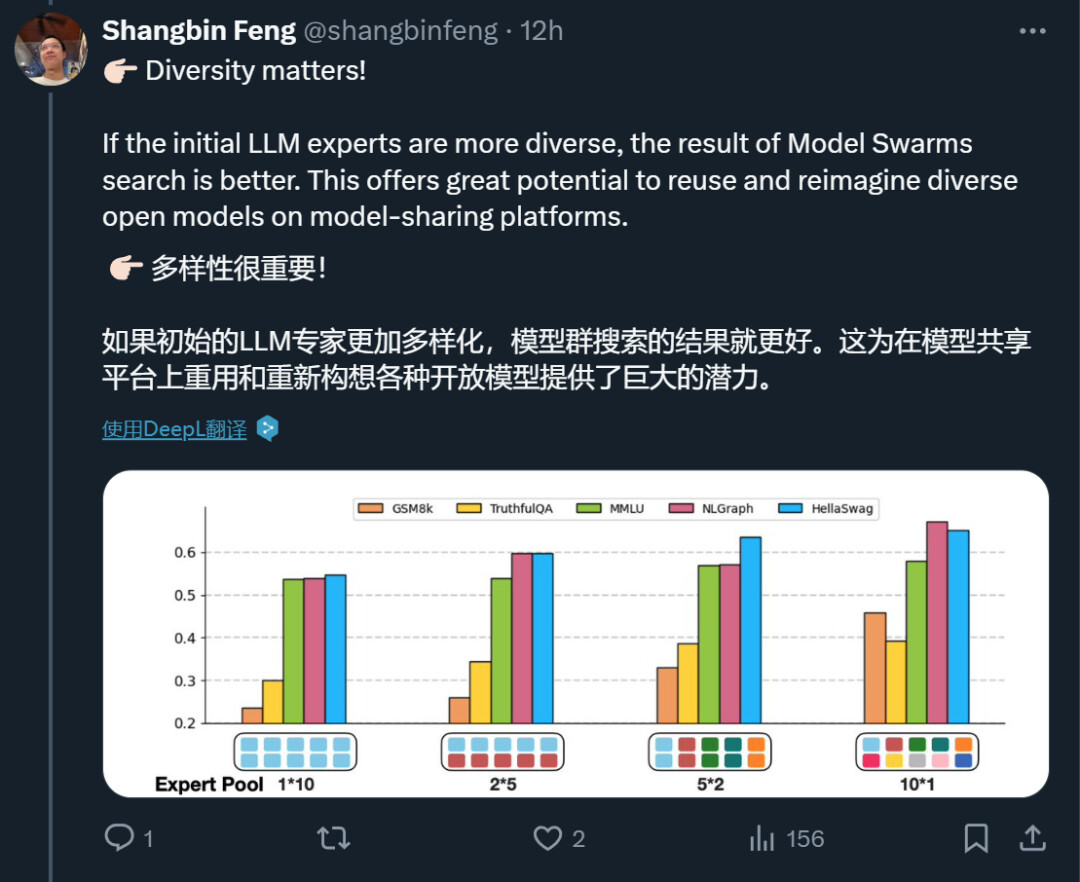 实证分析表明,初始专家的多样性至关重要,模型展现出了在初始检查点中未见的新能力,而且令人惊讶的是,最终表现最好的粒子通常并不是开始就表现最佳的那个。MODEL SWARMS 可以通过类似 dropout 的策略加速,并可以无缝扩展到不同模型架构专家的 token 概率算术。
