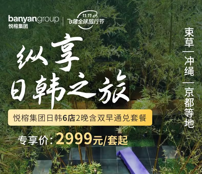 悦榕集团日韩6店2晚含双早+部分酒店可选晚餐=2999元起