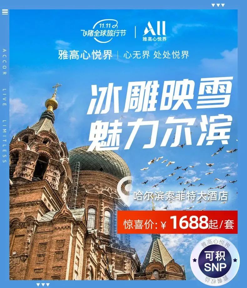哈尔滨索菲特大酒店2晚含早等=1688元起(12月20日前入住升套房)