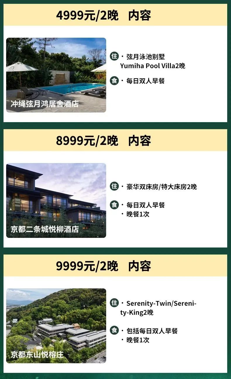 很多人度假喜欢去日韩,所以悦榕还推了一个日韩的酒店套餐,6家店两晚含早2999起步,其中除了束草悦琏酒店,其他酒店都是全程不加价的!