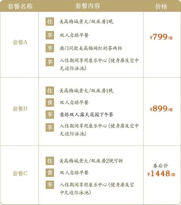 这次两个套餐有4个房型可选: