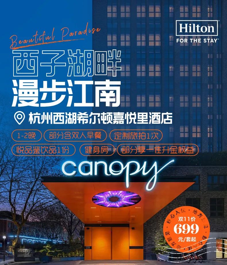 一住升金!杭州西湖希尔顿嘉悦里1-2晚含早=699元起