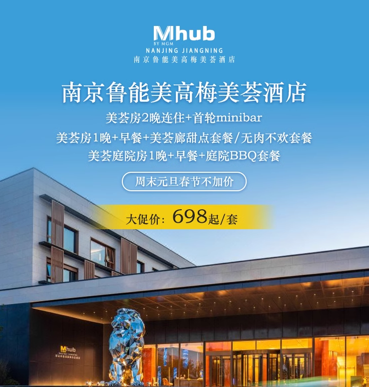 南京鲁能美高梅美荟酒店1-2晚含早=券后648元起(全程不加价)