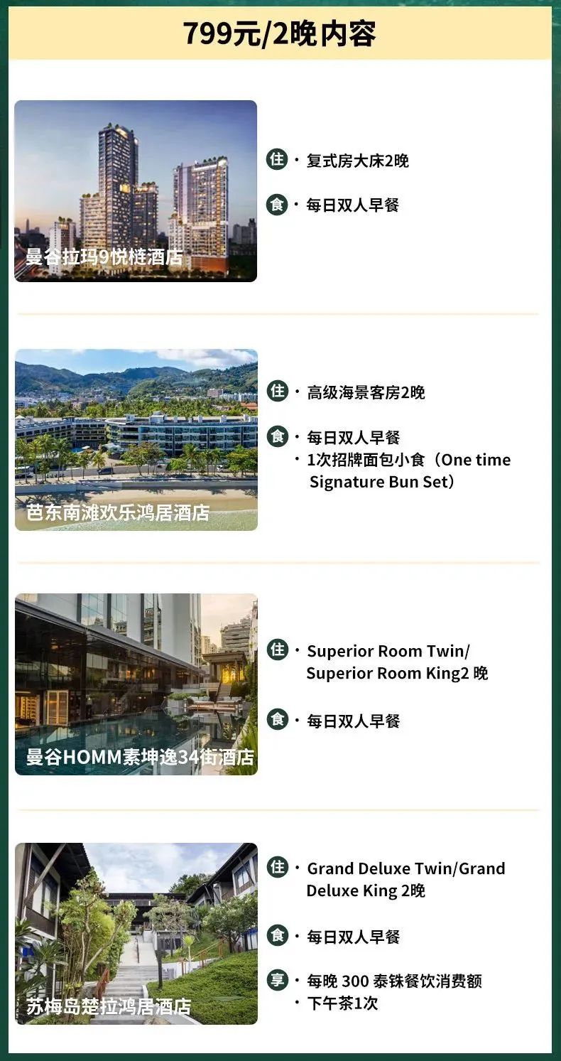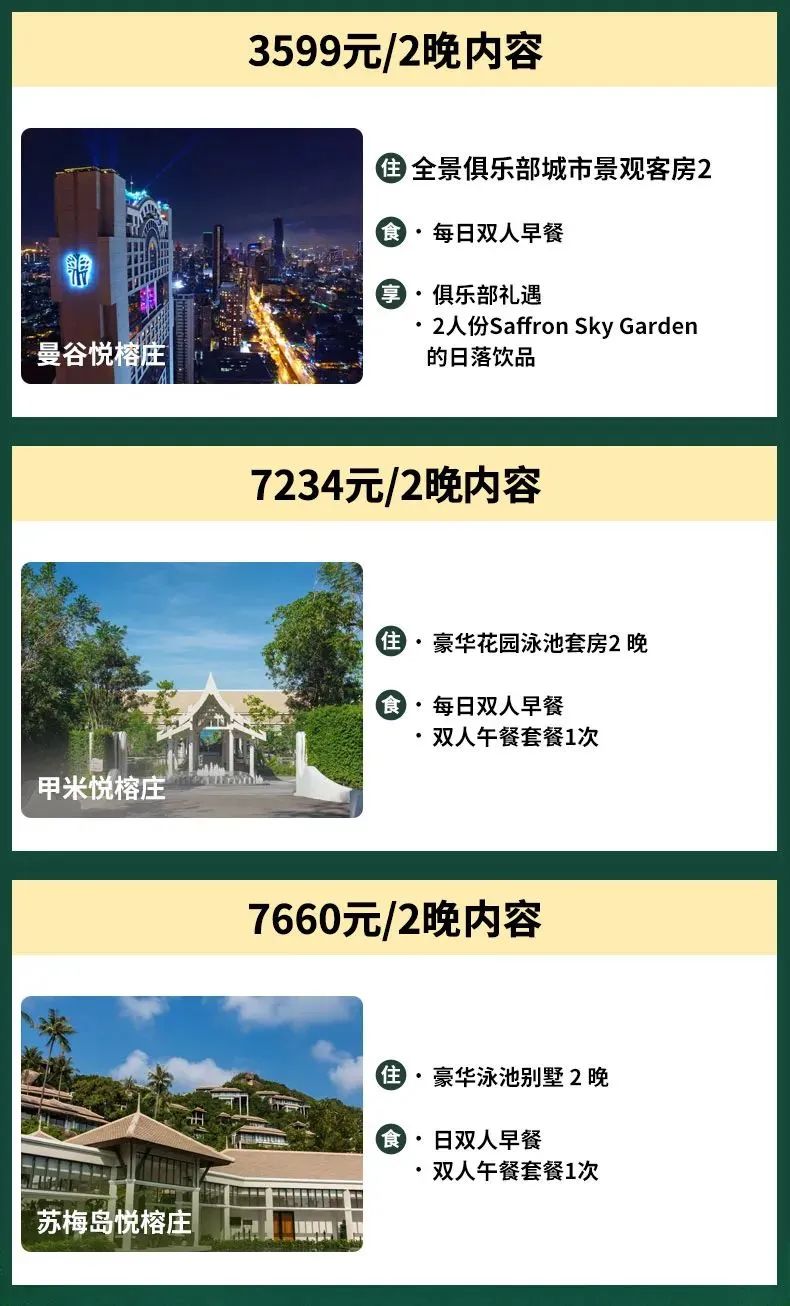 除了希尔顿,悦榕在泰国也有套餐!大家都知道悦榕做度假酒店很厉害,所以这10家酒店也全是高品质度假酒店,799能在曼谷、芭东或者苏梅岛住两晚真的性价比非常高了!