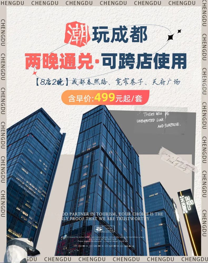 成都春熙路太古里8店通兑2晚可拆分=499元起(除春节外全程不加价)