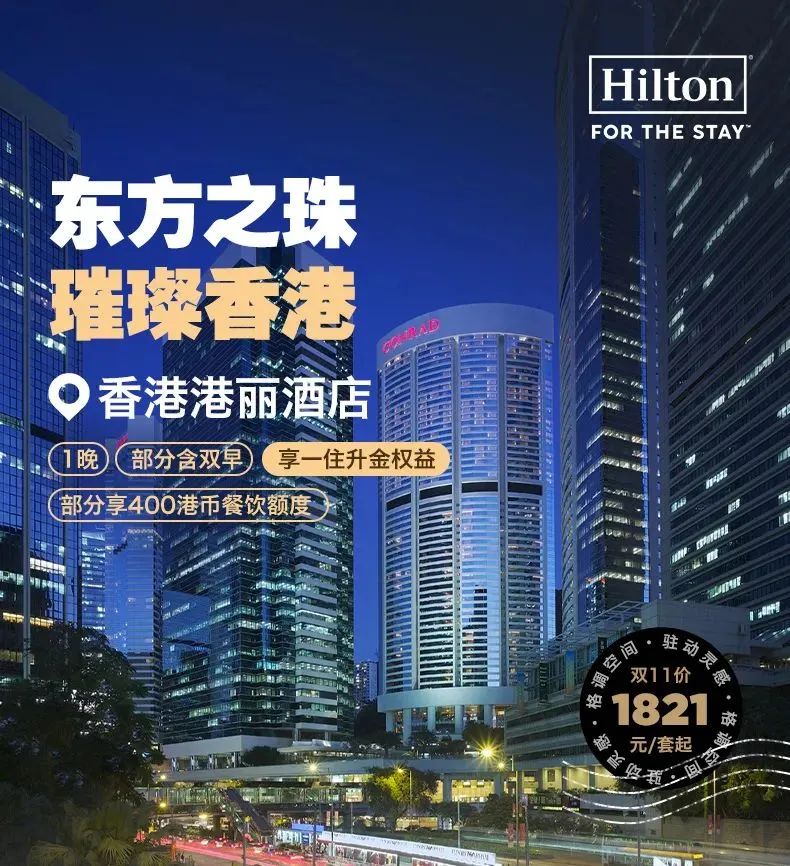 一住升金!香港港丽酒店1晚套餐=1821元起