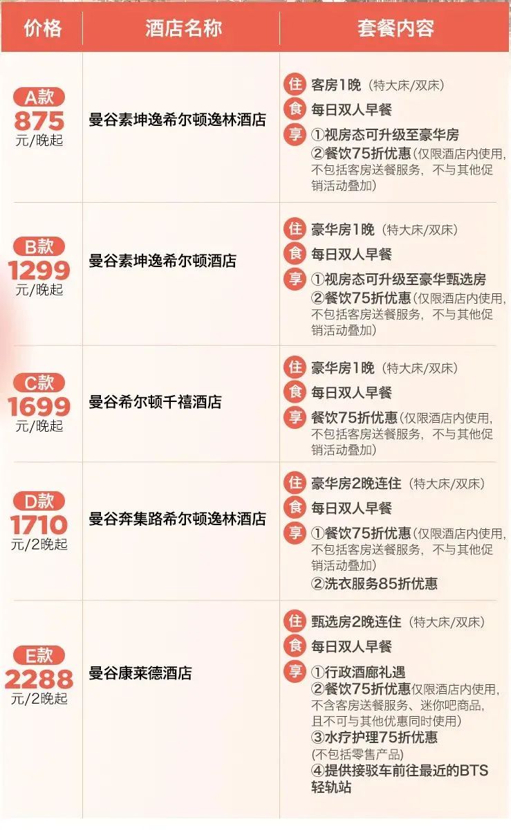 希尔顿曼谷5家酒店的大通兑!最低875元一晚起步,其中曼谷奔集路希尔顿逸林全程不加价。