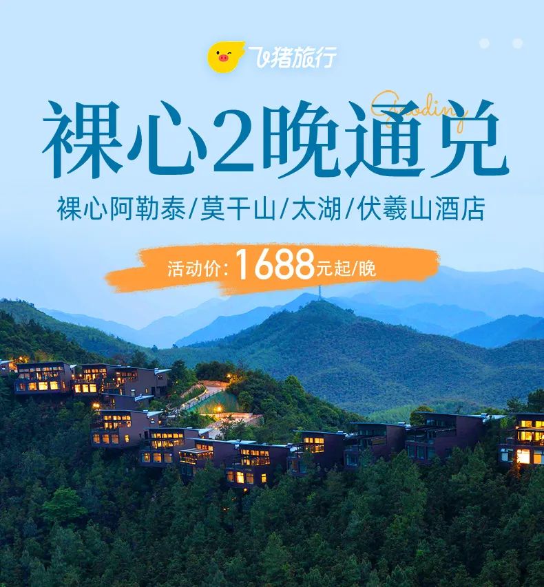 裸心莫干山/苏州/郑州/阿勒泰酒店2晚含早+娱玩项目通兑=1688元起
