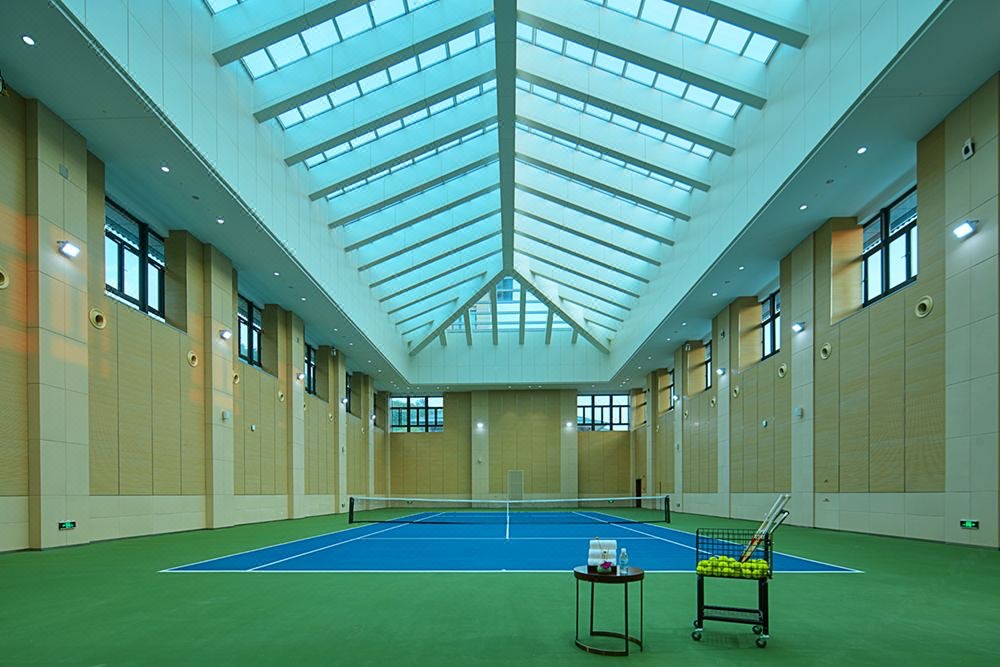 娱乐设施有单独的文体楼,可以去泳池、网球室、台球室运动一下,出出汗,开启健康度假生活。