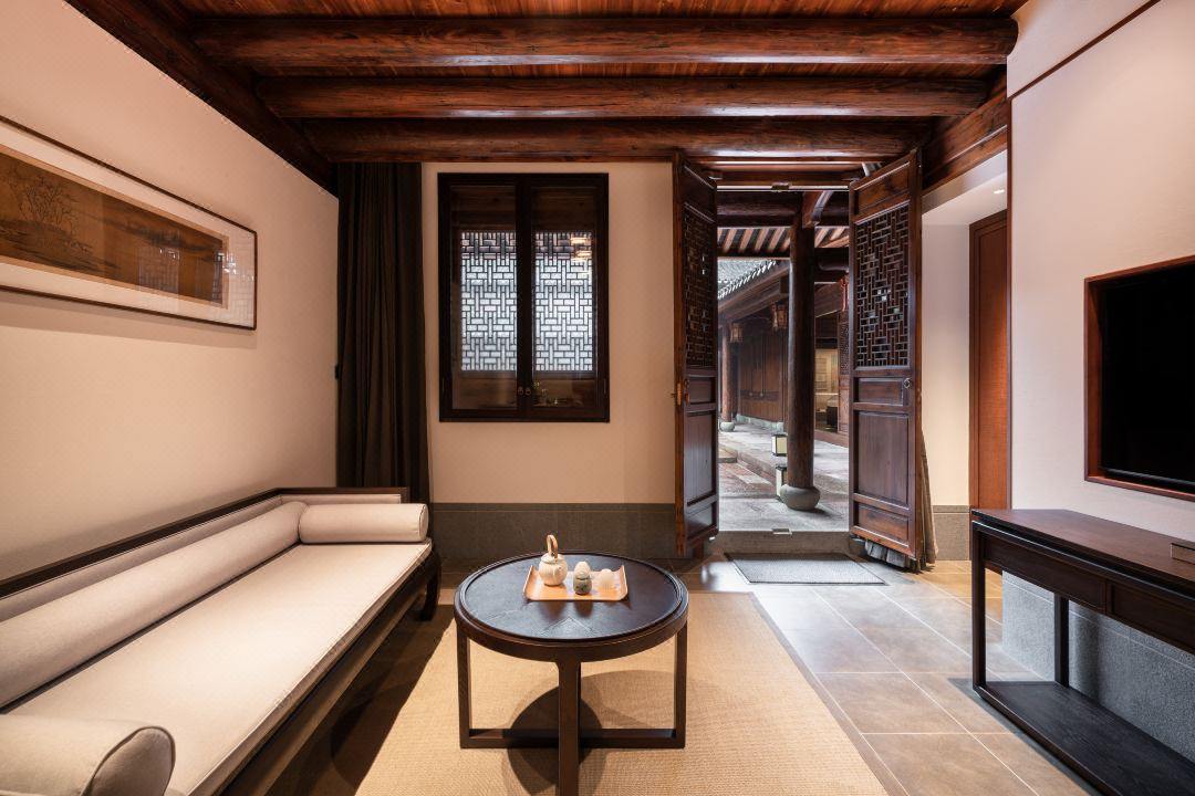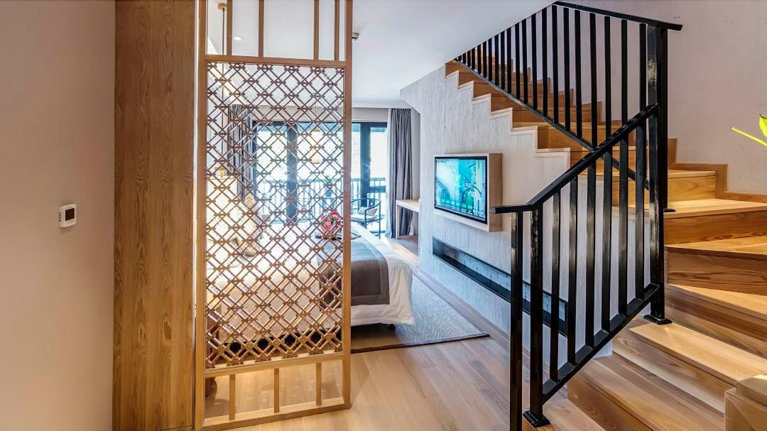 整体建筑风格采用江南村落的别院设计,古色古香。同款日历房价近680元/晚,套餐约为5折。