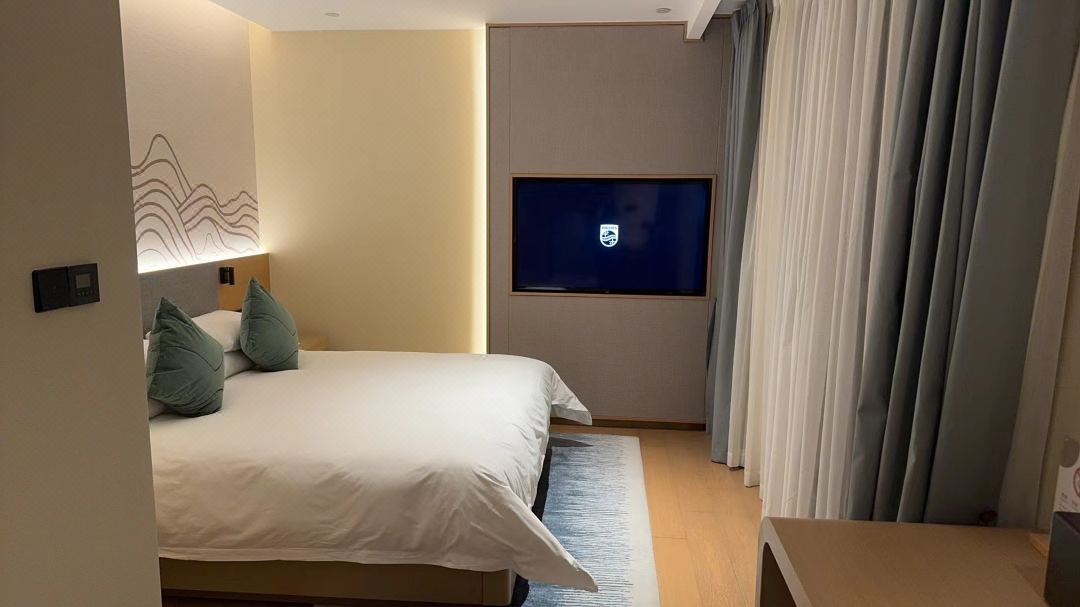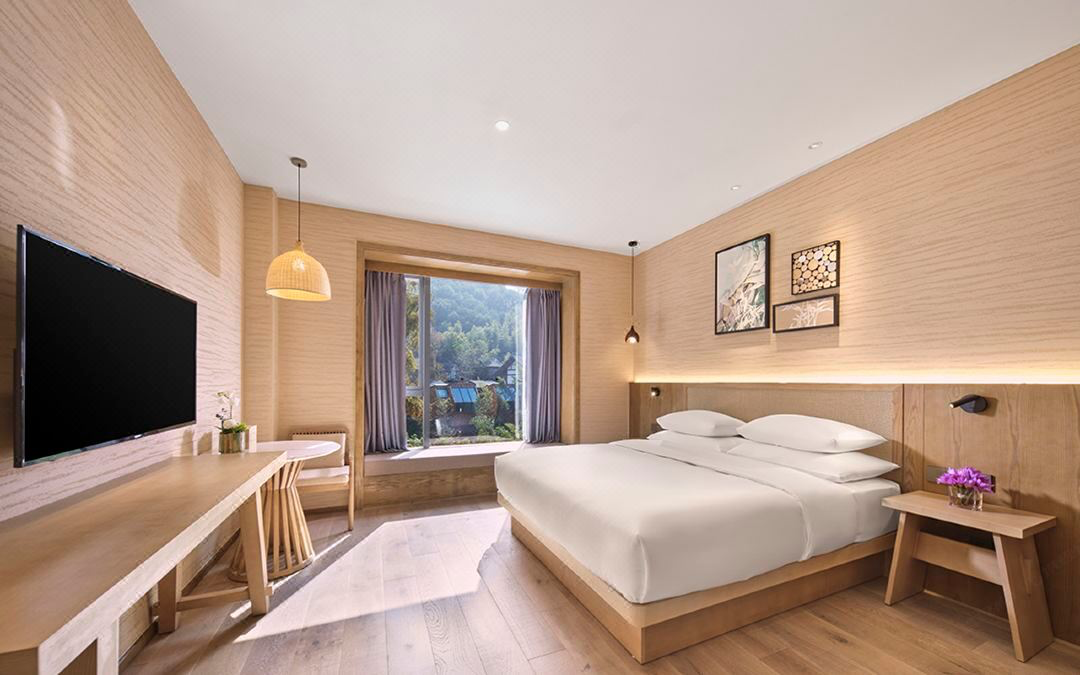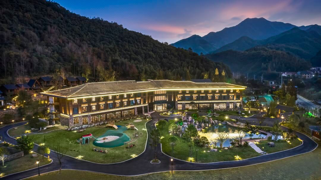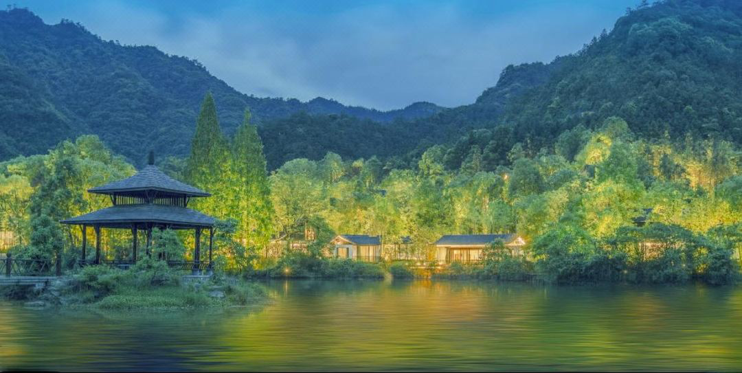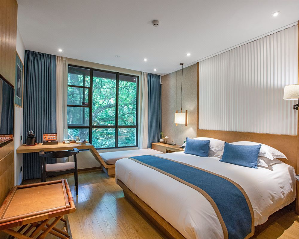 酒店在莫干山景区旁,由潘天寿设计院倾心打造,山水田园画风融合德清当地文人气质,很有特色。