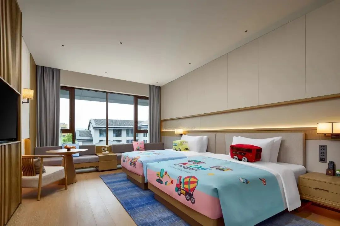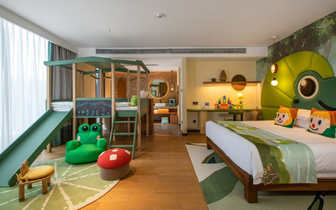 同样是898元/晚的杭州富春芳草地,给到的房型是灵蛙主题亲子大床房,儿童床竟然是带滑梯的,小朋友住进去大概率是不想出门了。