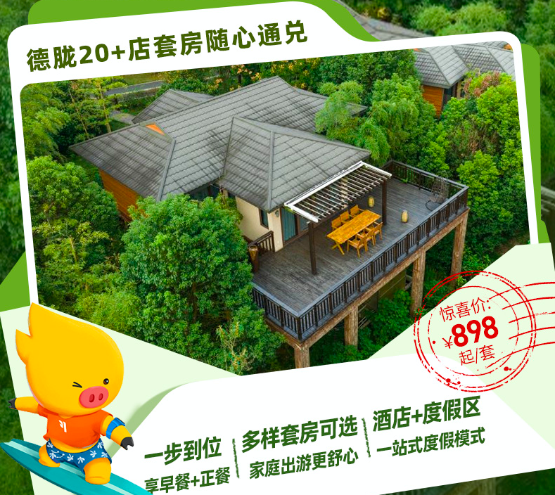 2、德胧全国20+店亲子房或高端套房度假通兑,898元/晚起