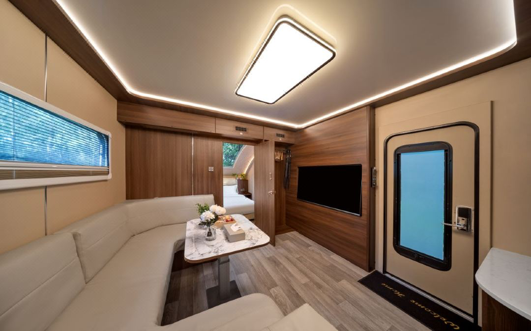 双卧房车游2张大床,日历房价近800元/晚,套餐约为6折。周末不加价,所以周边的同学可以周末来体验一下房车的乐趣。