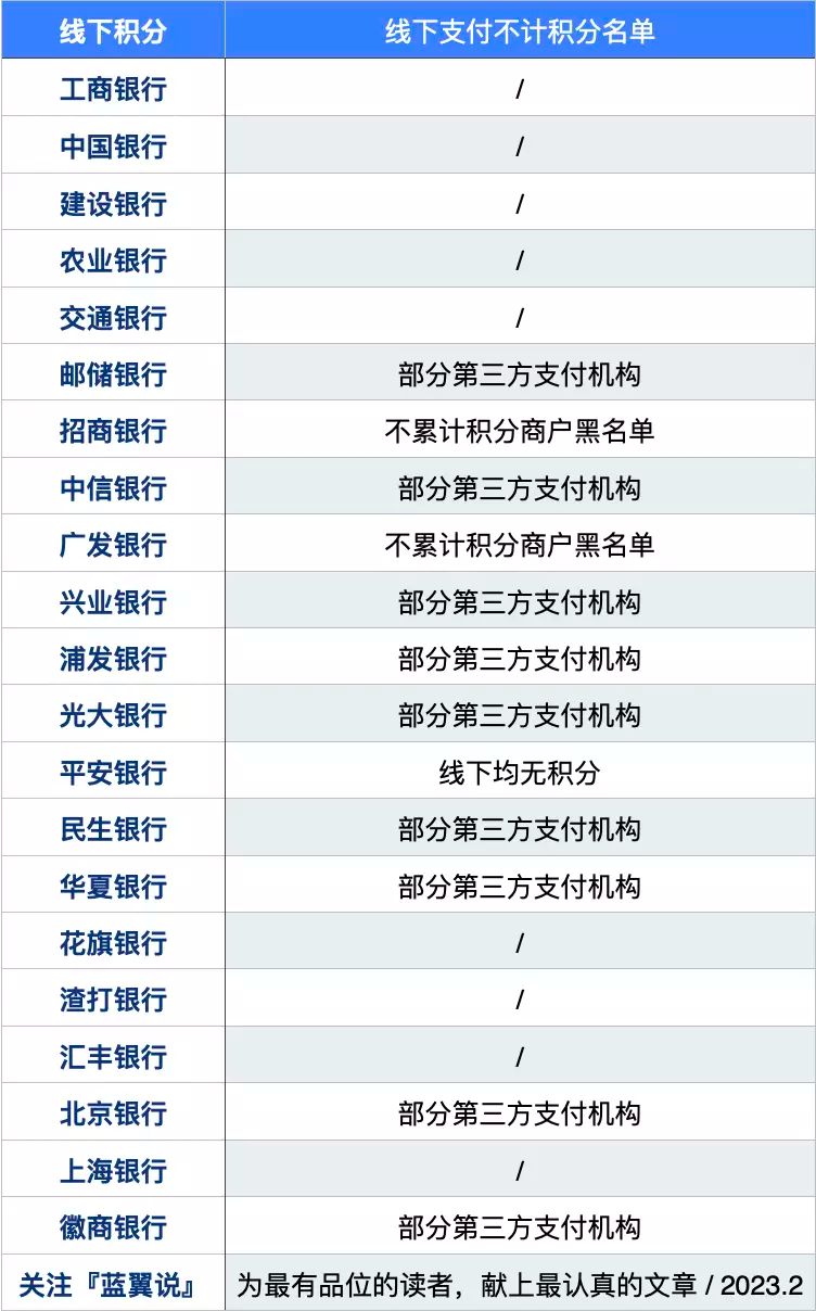 银行网付积分的情况,大家可以参见下表:
