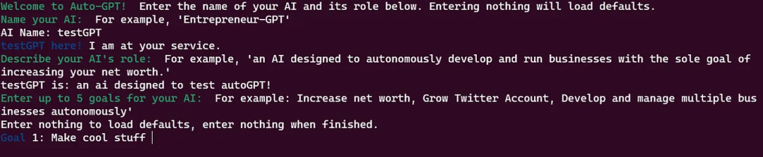 执行以下命令,运行 AutoGPT。