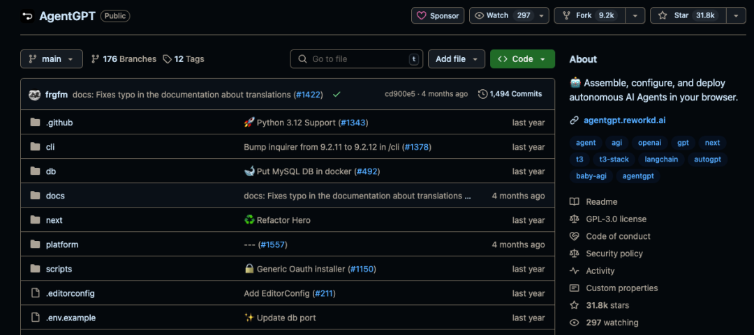 GitHub 地址:https://github.com/reworkd/AgentGPT