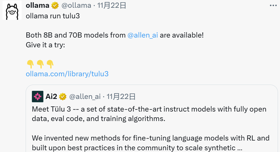 技术报告:https://allenai.org/papers/tulu-3-report.pdf