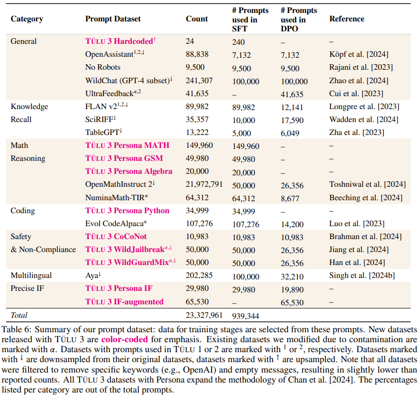 数据集:https://huggingface.co/collections/allenai/tulu-3-datasets-673b8df14442393f7213f372