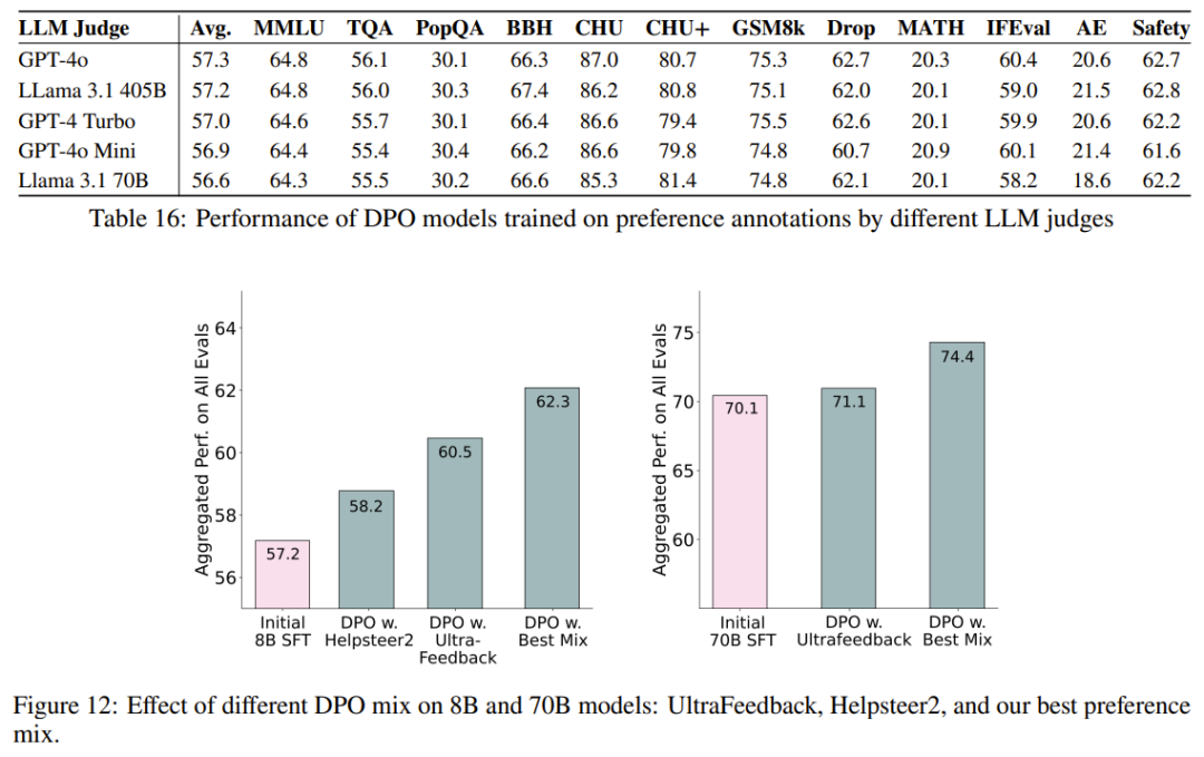 阶段三:偏好微调。Ai2 将偏好微调 —— 特别是 DPO(直接偏好优化)—— 应用于根据选定的提示和 off-policy 数据构建的新 on-policy 合成偏好数据。与 SFT 阶段一样,他们通过全面的实验来确定最佳偏好数据组合,从而发现哪些数据格式、方法或超参数可带来改进。