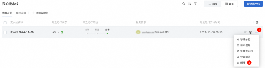 2. 删除云效的流水线:进入云效流水线,点击流水线右侧