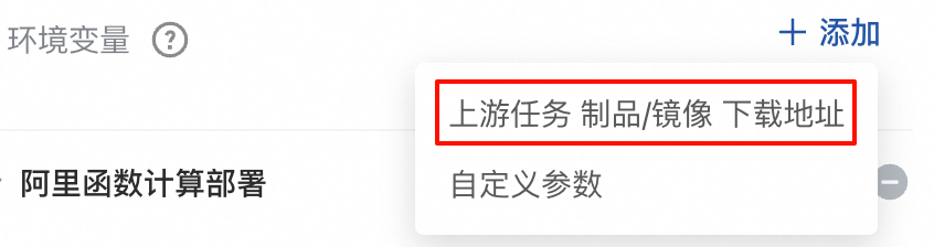 点击环境变量的添加按钮 ,选择上游任务 制品/镜像 下载地址。