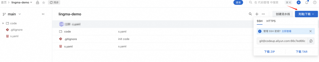 进入云效代码管理,点击目标代码仓库名称进入仓库详情页。