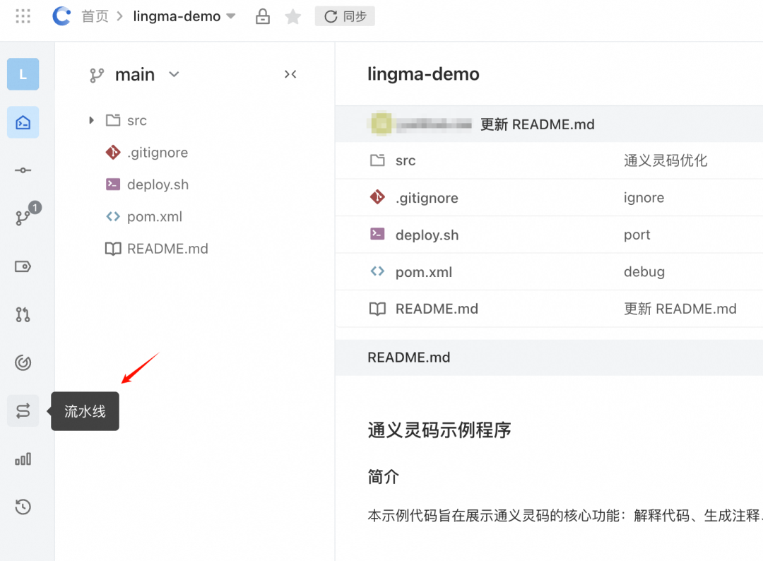 1. 点击当前代码仓库左侧导航栏中的流水线。