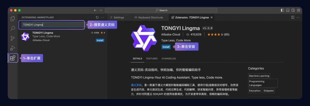 2.1 Visual Studio Code 中安装通义灵码