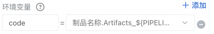 环境变量名称设置为code,将其值指定为上游构建阶段生成的产物,如制品名称.Artifacts_xxx。