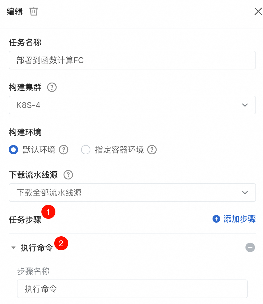 在弹出的编辑页面找到任务步骤 ,点击执行命令。